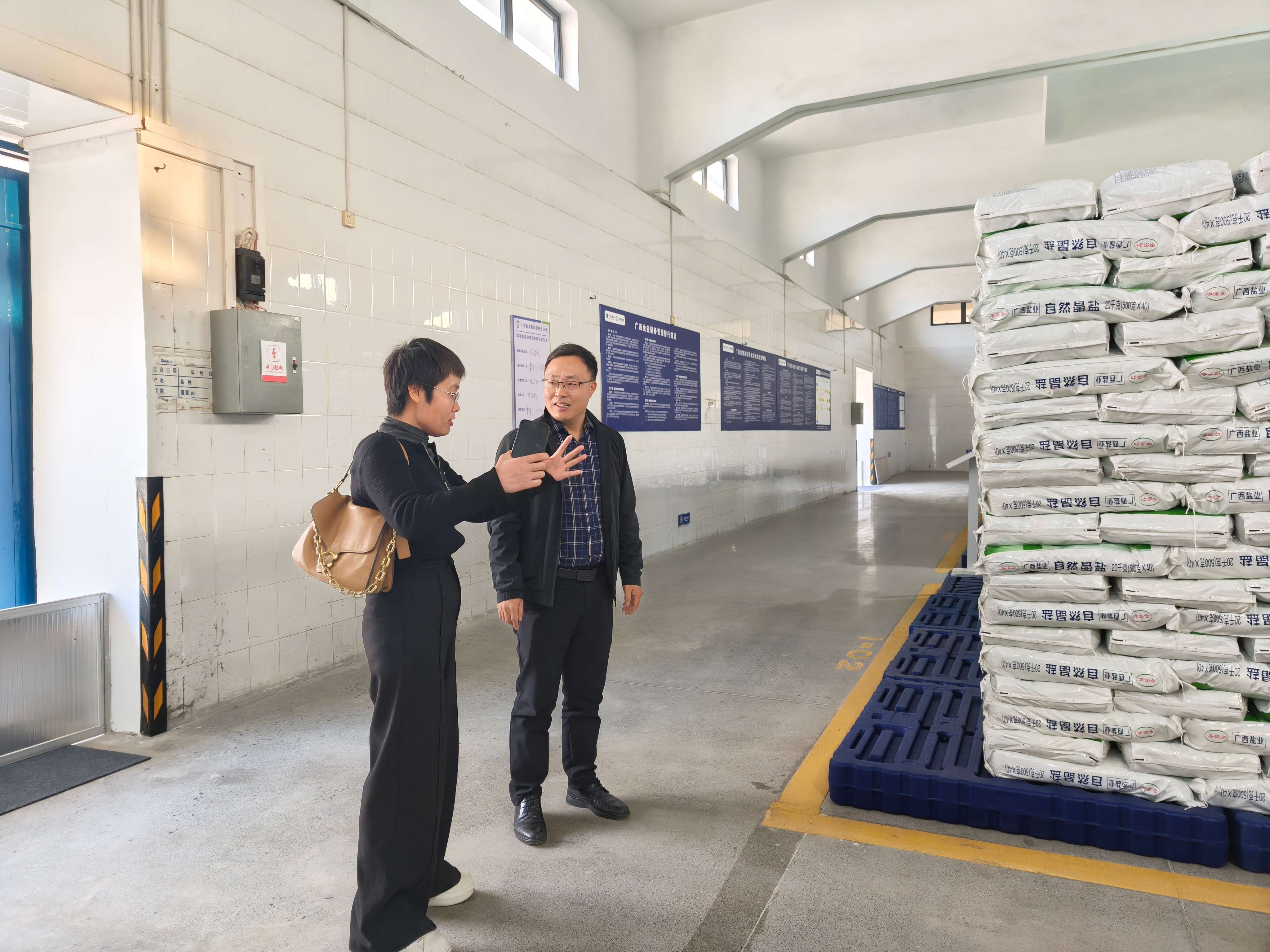 在倉庫現(xiàn)場,調(diào)研組詳細詢問倉庫容量、儲備設(shè)施配置、衛(wèi)生管理及質(zhì)量保障體系等關(guān)鍵環(huán)節(jié)。當了解到賀州分公司嚴格遵循自治區(qū)食鹽儲備標準,保障儲備庫容以及定期抽檢機制時,調(diào)研組對分公司“高標準、嚴要求”的儲備管理模式表示充分肯定。